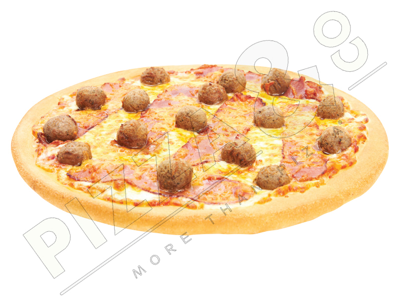Stone-baked Meatball Melt pizza, cooked to order with a crisp base and generous toppings.