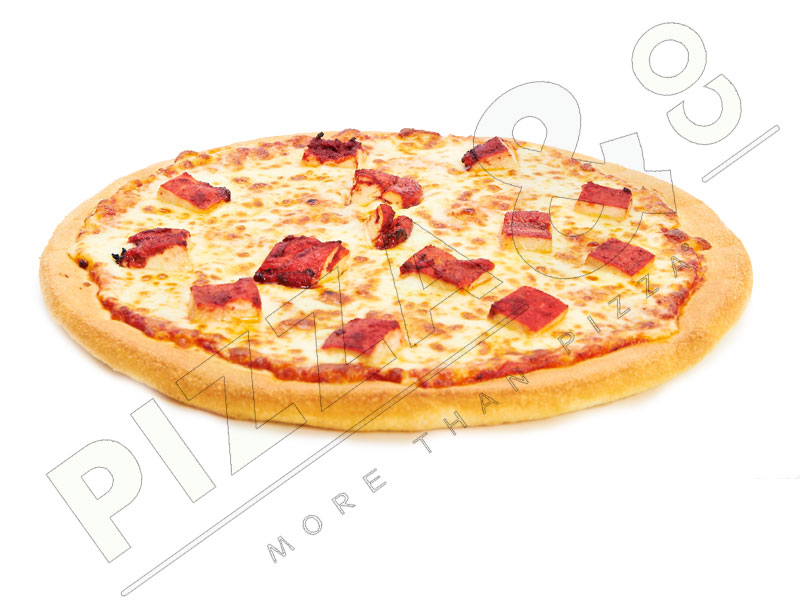 Stone-baked Tandoori Chicken pizza, cooked to order with a crisp base and generous toppings.